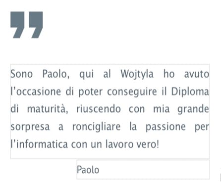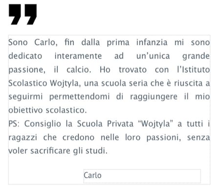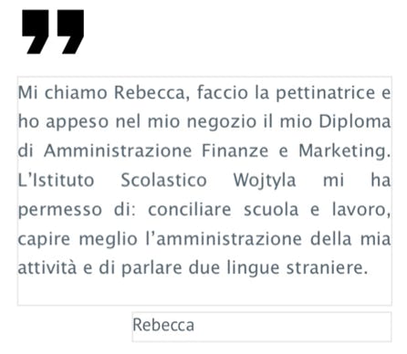 Dicono di noi: “…é una Scuola ‘fatta di persone’, perché le esigenze dei ragazzi sono al centro del loro impegno.”